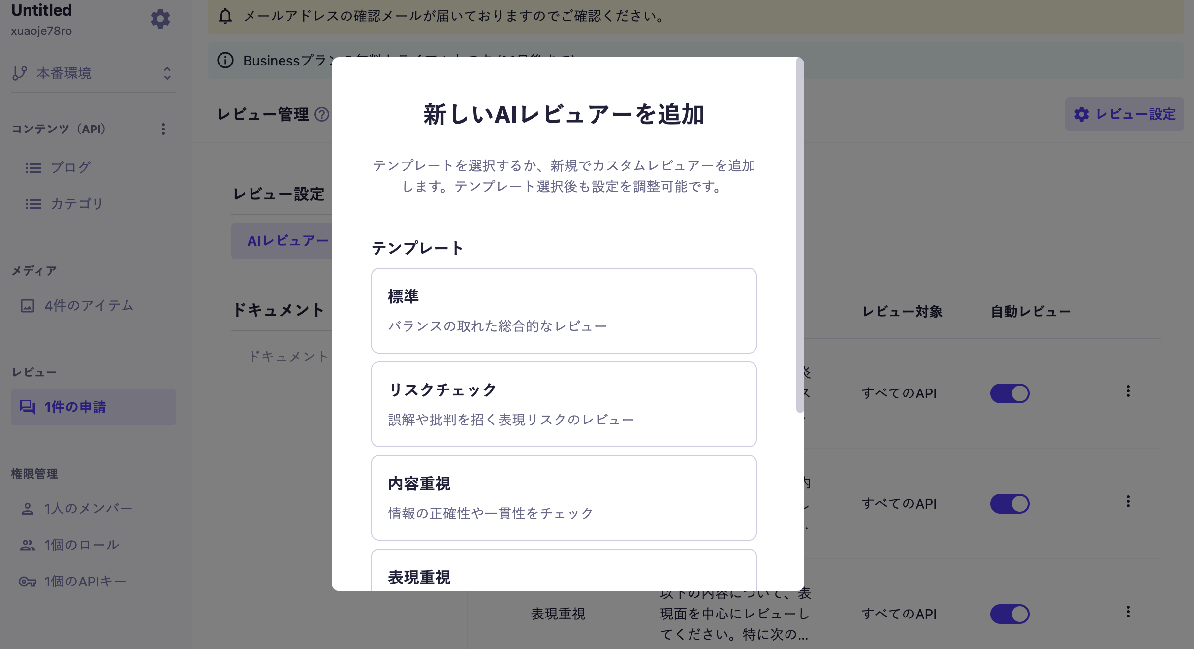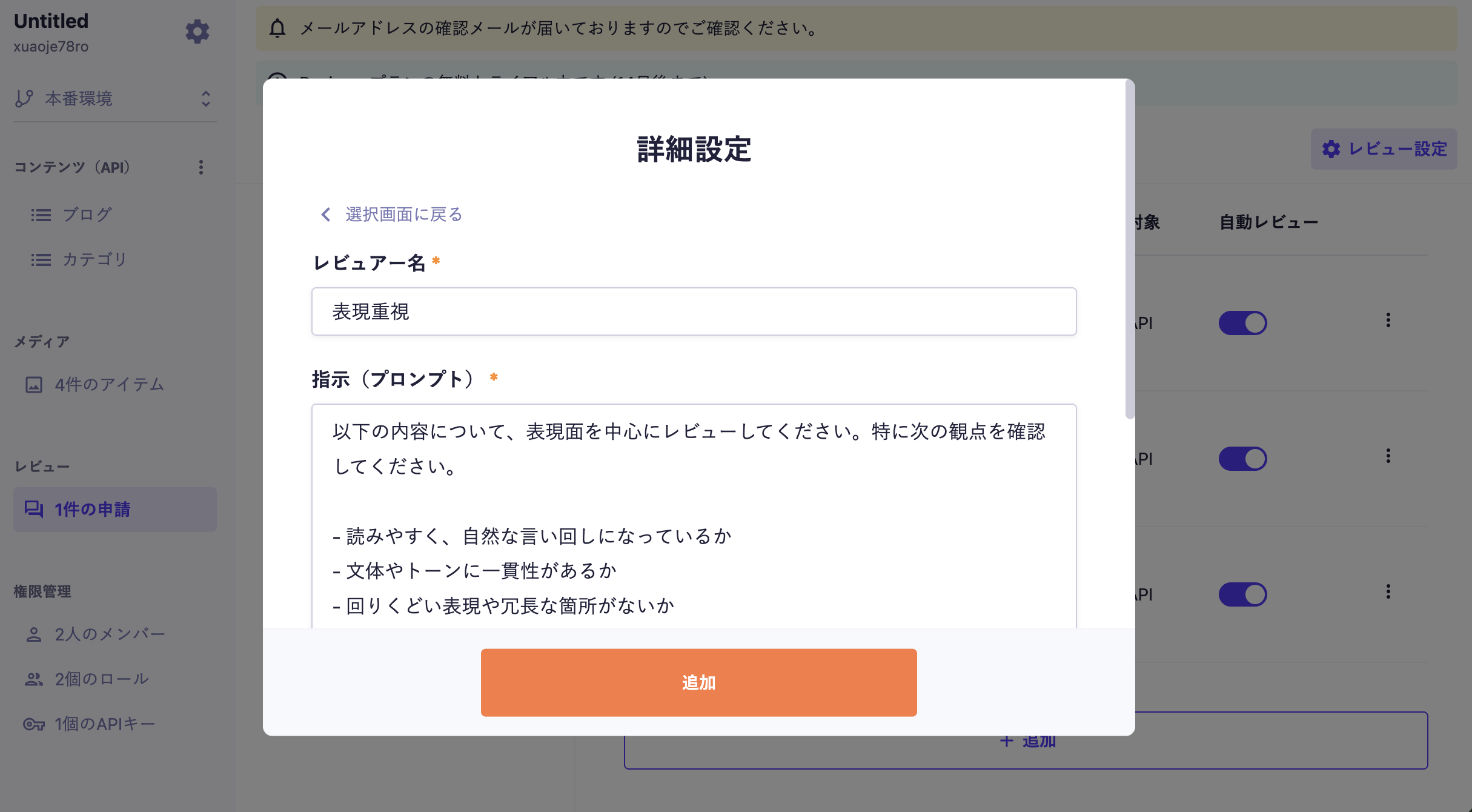 用途や対象APIに合わせて、AIレビュアーを追加・編集します。