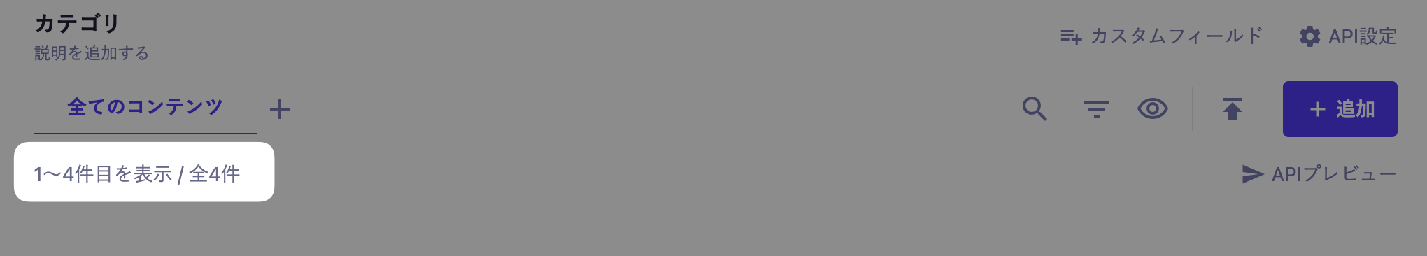 編集するには、コンテンツの表示件数の部分(「1〜N件目を表示/全N件」)をクリックします。