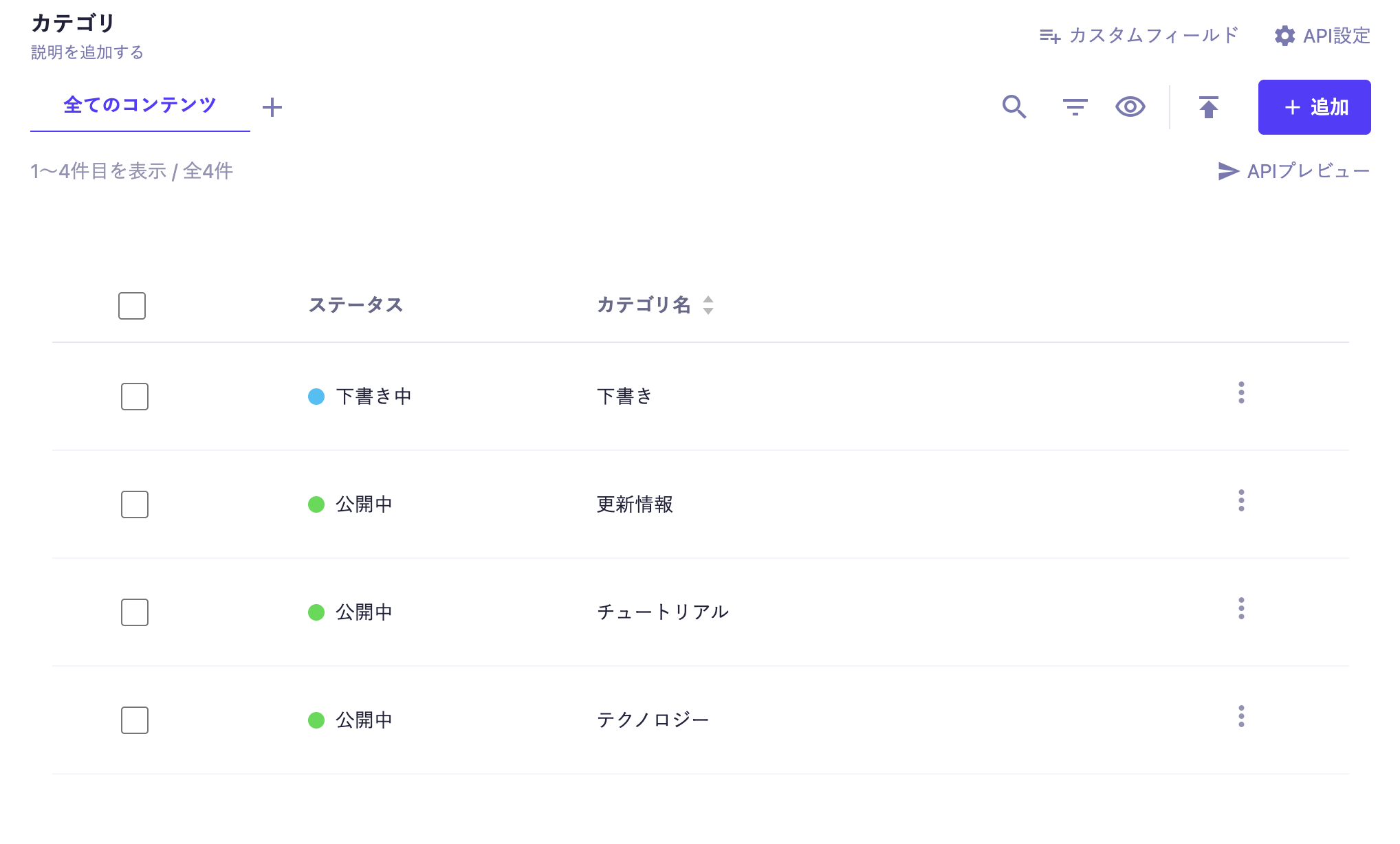 コンテンツ一覧画面で、各APIごとに作成したコンテンツを管理できます。