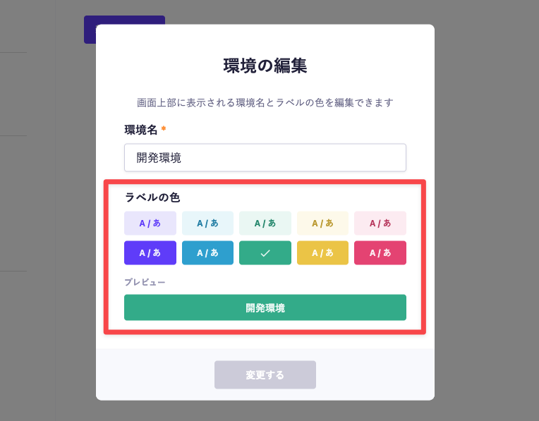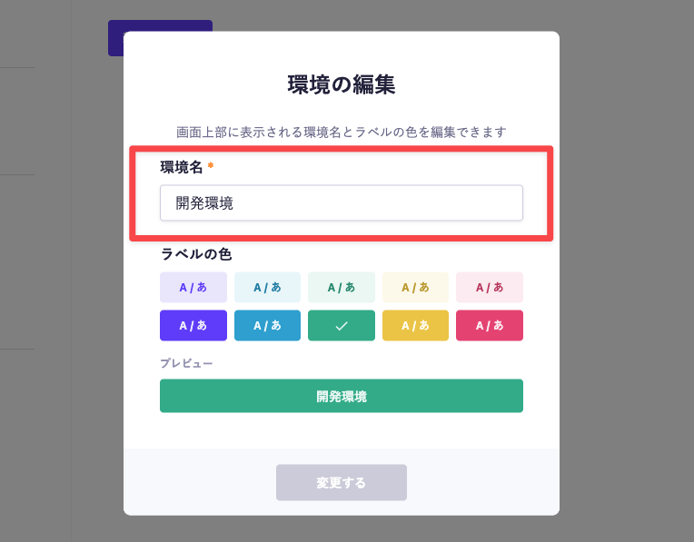 編集画面にて、環境名の編集ができます。